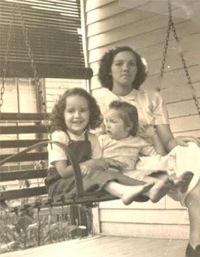 My sister Priscilla standing, myself, Dorna sitting at our Peach Creek WV house.
