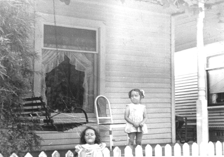 My sister Priscilla standing, myself, Dorna sitting at our Peach Creek WV house.